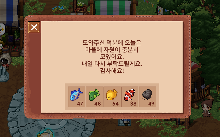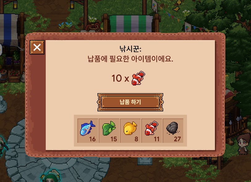 - 마을 중앙에 있는 NPC들에게 납품을 하시면 됩니다.