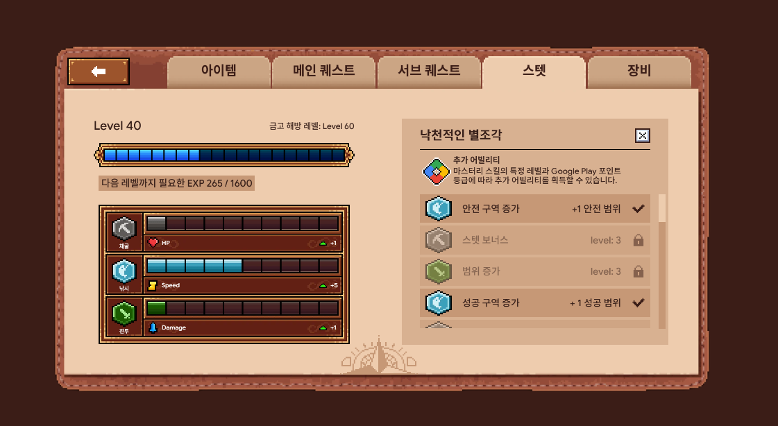 - 특정 채집활동을 반복해서 경험치를 획득하면 해당 미니 게임이 조금 더 쉬워지거나 효율적으로 획득이 가능하게 됩니다. 현재까지 파악한 구조로는 레벨을 올리는데 다른 활동이 필요 없어 보이기는 하는데 예상으로는 보스 콘텐츠를 공략할 때 다른 활동을 전혀 하지 않았을 경우 공략이 힘들어지는 구조가 아닐까 예측해봅니다.(확인 후 업데이트 예정)